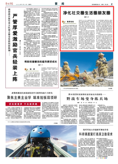 军队不同于地方,军人也不同于普通群众,军人身份决定了社会交往的范围和对象必须受到一定限制。我军历来以治军严明、守纪如铁著称于世,军人在人际交往中应该有更加严格的规范、更加清晰的边界和更加明确的“禁区”。每一位自尊、自重、自爱、自律的军人,都应该不断净化自己的社交圈、生活圈、朋友圈,这既是国家安全和军队建设的要求,也是军人履职尽责、树立良好形象的需要。