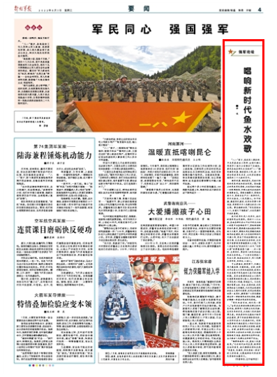 “难得举城作一庆,爱我人民爱我军。”无论时代如何发展、战争形态如何演变,我们都要巩固和发展“军爱民、民拥军,军民团结一家亲”的大好局面,汇聚起新时代军政军民团结的如磐伟力。