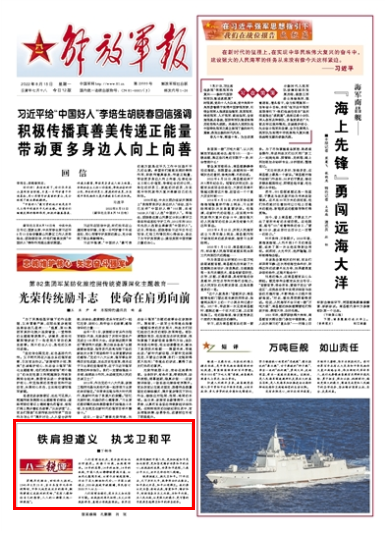 铁肩担道义,执戈卫和平。77年过去,天下并不太平,战争阴云仍未散去。和平来之不易,和平必须捍卫。我们要以史为鉴、面向未来,珍爱和平、维护和平,时刻准备为正义而战,为和平而战,为人民而战,以更强大的能力、更可靠的手段肩负起捍卫和平的神圣使命。