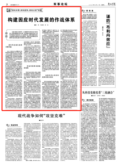 当前大数据、物联网、人工智能等先进技术的飞速发展,正推动着战争形态由单一杀伤链向多域杀伤网、由多军兵种联合作战向有人/无人协同作战、由钢铁集群突击向作战要素可重构等方向快速转变。战争形态的演变迫切需要作战体系因应时代发展进行深层次变革。