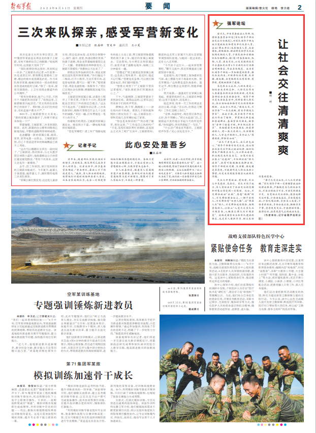 “君子之交淡如水,小人之交甘若醴。”军队领导干部一定要绷紧政治和纪律这根弦,严格规范自己的社会交往,不该去的地方不去,不该交的朋友不交。自觉端正交往动机,慎重选择交往对象,少些迎来送往,多些思想交流;少些吃喝应酬,多些关心友爱;少些亲亲疏疏,多些公道正派,踏踏实实干事,清清爽爽交往,才能树好形象、赢得信任,涵养风清气正的政治生态。