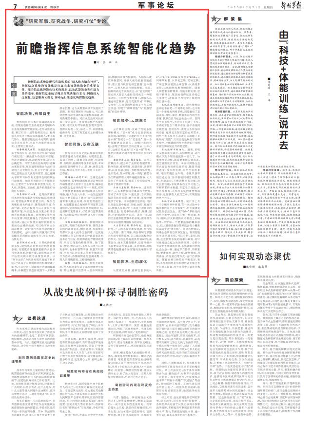 指挥信息系统是现代作战体系的“拟人化大脑和神经”,指挥信息系统的智能化是打赢未来智能化战争的重要支撑。随着信息化智能化技术的进步,以及武器装备和作战力量的变革,指挥信息系统呈现出作战决策自主化、网络接入泛在化、信息服务云端化、体系运行生态化的智能化趋势。