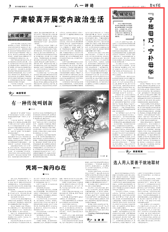 周恩来同志告诫我们:“最聪明的人是最老实的人。因为只有老实人才能经得起事实和历史的考验。”部队是要打仗的,军人是要上战场的,平时训练实打实,打仗才能硬碰硬。刚刚结束的党的二十届四中全会,对党和国家事业作出全面部署,也对国防和军队建设提出新的要求。“立业建功,事事要从实地着脚,若少慕声闻,便成伪果;讲道修德,念念要从虚处立基,若稍计功效,便落尘情。”新征程上,全军官兵锚定目标,坚定信心,以拙诚立身,以笃行谋事,必能以徙木立信的拙诚、朴实无华的实干,克服困难,赢得胜利。