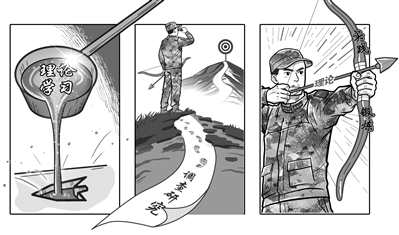 “弄到箭、看清靶、射得准”,体现了“由学到用到会用”的实践过程。这深刻地启示我们,具体工作中,只有把3个步骤全面系统地联系起来,认真加以运用,才能做到“有的放矢”,推动各项事业高质量发展。对军人而言,实现能打仗、打胜仗的目标,就要掌握作战理论,洞悉现代战争制胜机理,不断研究训法战法,积极投身实战化训练磨砺自己,真正成为未来战争的行家里手,确保一旦有事能够上得去、打得赢。