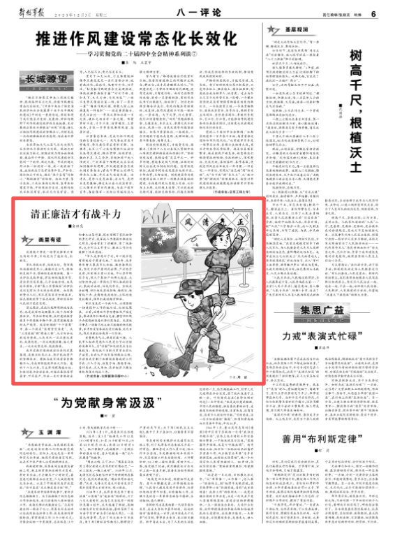 清正廉洁,是我们党鲜明的政治底色,也是我军形成凝聚力、战斗力的重要法宝。早在红军时期,我们党就教育党员干部要做手脚干净、没有腐败想法的共产党员。延安时期的“十个没有”中,第一个就是“没有贪官污吏”。从“三湾改编”到“赣南三整”,从古田会议到延安整风,人民军队一次次整风肃纪、反腐惩恶,一次次凤凰涅槃、浴火重生,一次次攻坚克难、战胜强敌。
