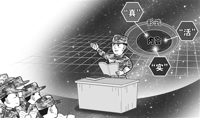 开展思想政治教育,不能只盯着外表华丽的形式,更要在打造优质内容、解决思想困惑、启迪心灵心智上花功夫,真正做到一段话有一段话的作用、一堂课有一堂课的收获。应力求一个“真”字,坚持用真理说服人、真情感染人、真实打动人,“站在同志之地位”“用诚恳的态度”,把道理讲得入情入理、入脑入心;应力求一个“活”字,激活信息网络的“最大增量”,搭起多维共育的“力量矩阵”,灵活创新教学方式方法,让教育模式不单一,使课堂“活”起来;应力求一个“实”字,大兴调查研究之风,密切关注和掌握深化改革、正风反腐、备战打仗中官兵思想动态,破除“假、大、虚、空”,确保教育精准发力、精准落地。