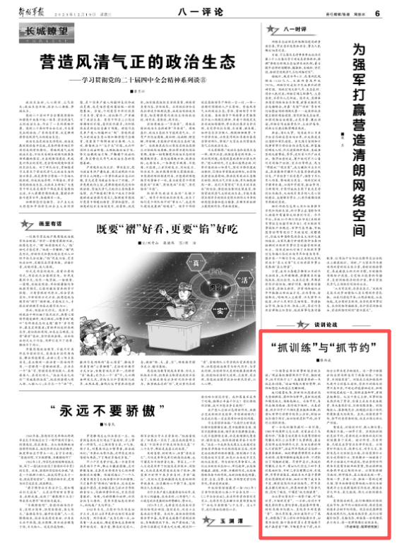 一位领导在单位军事训练会议上讲:“现在各级都强调厉行节约、勤俭建军,抓节约抓什么?我看很重要的一点就是抓训练。”这话听起来有些费解,但仔细想想又深感其见解独到。