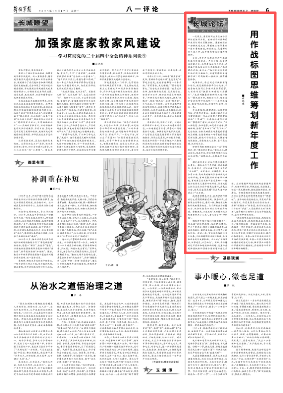 制定新年度计划同样需要摒弃“一劳永逸”的定势思维,保持弹性思维。邓小平同志说:制定计划遵循的原则,应该是积极的、留有余地的、经过努力才能达到的。新的一年,可能面临临时性重大任务,可能遇到预想不到的挑战,也可能迎来新的发展机遇。古人云:“不拘常法,临事适变,从宜而行”。因此,在保持计划严肃性和连续性的同时,设置必要的弹性机制和预备方案确有必要且必须。应当像指挥所更新战场态势图那样,定期对照目标、审视进度、校准偏差,畅通一线反馈回路,敏锐捕捉新情况、新要求。当现实路径受阻或机遇来临时,应当以实事求是的精神果断按下“调整键”。这种与时俱进的能力,不是对严肃性的否定,而是更高层次的责任担当。这种“预留接口”的智慧,使计划既是指引方向的“罗盘”,又是能够应变的“活地图”,更有利于引领部队在变局中把握先机,在创新中开拓新局。