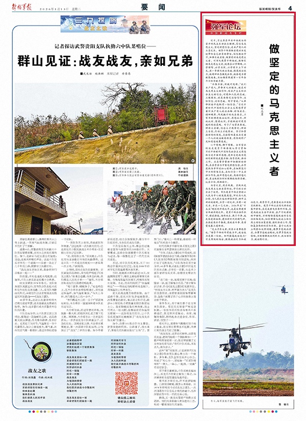 为学之实,固在践履。实践性是马克思主义的显著特征,学习的目的全在于运用。军队党员干部应坚持以人民为中心的发展思想,牢记为人民扛枪、为人民打仗的神圣职责,树牢正确的政绩观,不贪一时之功、不图一时之名、不求一己之私。2026年是“十五五”规划的开局之年,也是攻坚建军百年的冲刺之年。党员干部应恪尽职守、精武强能,迎难而上、敢于斗争,鼓足奋进新征程、建功新时代的精气神,在推进高水平备战、高效益斗争、高质量发展上建新功。
