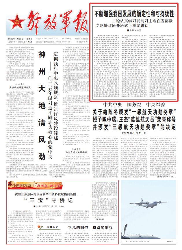 强国必须强军,军强才能国安。党的二十届四中全会对如期实现建军一百年奋斗目标、高质量推进国防和军队现代化作出重大部署、提出明确要求,为我军在“十五五”时期开创国防和军队现代化新局面指明了前进方向、提供了根本遵循。国防和军队现代化是为实现中华民族伟大复兴提供战略支撑的现代化,是机械化信息化智能化融合发展的现代化,是永葆人民军队性质宗旨本色的现代化。秉纲而目自张,执本而末自从。只有深入贯彻落实党的二十届四中全会精神,把准“十五五”时期阶段性特征,坚持重大原则要求,科学搞好布局设计,才能确保推进国防和军队现代化的正确方向。