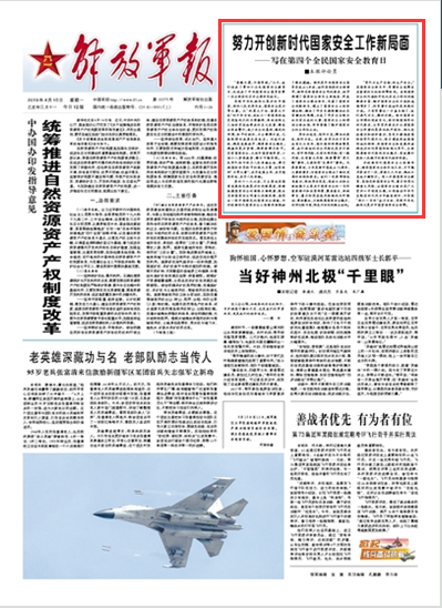 “备豫不虞,为国常道。”今天,我们迎来了第四个全民国家安全教育日,也迎来了中央国家安全委员会第一次全体会议召开五周年纪念日。请关注今日《解放军报》的评论——