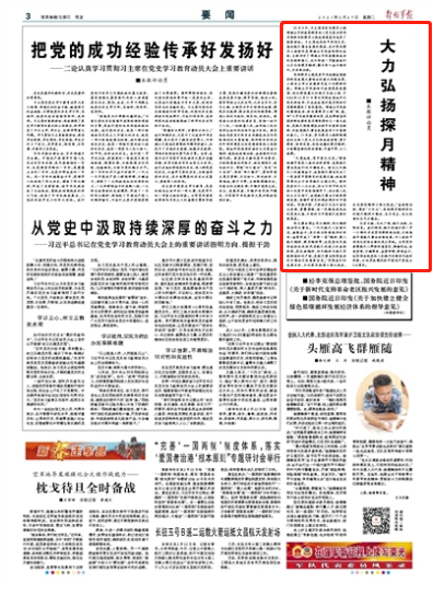 解放军报评论员:大力弘扬探月精神