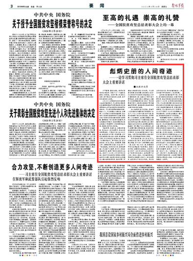 ■千年梦想,圆在今朝。脱贫攻坚战的全面胜利,创造了又一个彪炳史册的人间奇迹。这是中国人民的伟大光荣,是中国共产党的伟大光荣,是中华民族的伟大光荣。