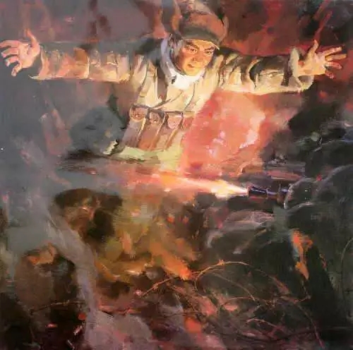 阵地已毁,弹已尽,援已绝。优势的敌军正踩着被钢与火耕耘了一遍又一遍的阵地,就要上来了。他或许会很平静地掏出了挚爱的钢笔,拧开笔帽,在一本笔记本上写了些什么。时间是那么有限,他或许还没写完,还没有盖上笔帽,一颗子弹或者一块弹片令他失去意识,从此与阵地化为一体。