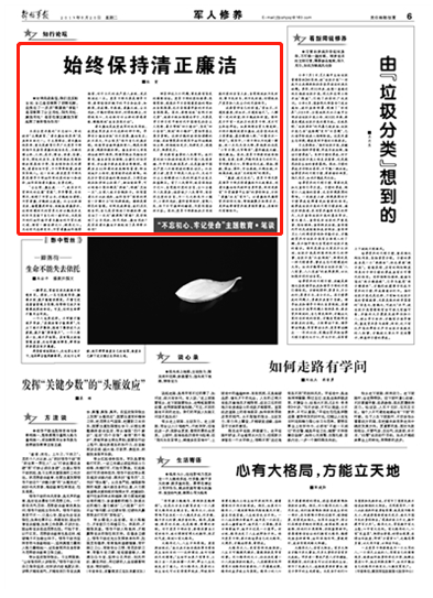 “廉者,政之本也”。党员干部尤其是领导干部应将清廉作为从政根本,用清正廉洁作风树好自身形象,同时更要有“为官避事平生耻”的责任担当,不但“清廉”而且“有为”。以清廉作风赢得官兵信任支持,增强凝聚力和感召力,更好地带领官兵投身强军事业,在新时代有新作为。