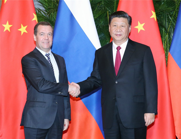 习近平会见俄罗斯总理梅德韦杰夫