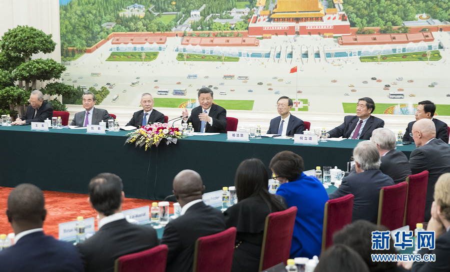 美国前国务卿基辛格、美国前财长保尔森、埃及旅游部部长马沙特、日本前外相川口顺子、瑞士信贷集团全球首席执行官谭天忠等外方代表先后发言。他们高度评价中国发展取得的伟大成就以及为世界和平与发展作出的重要贡献。他们认为,当前保护主义引发贸易摩擦,世界形势充满不确定性。在此背景下,中国继续推进改革开放,对于促进全球可持续发展和国际关系稳定具有重要意义。各方应加强各领域创新合作,全力避免出现“经济铁幕”。大家赞赏习近平主席提出的“一带一路”倡议,愿积极参与共建“一带一路”。