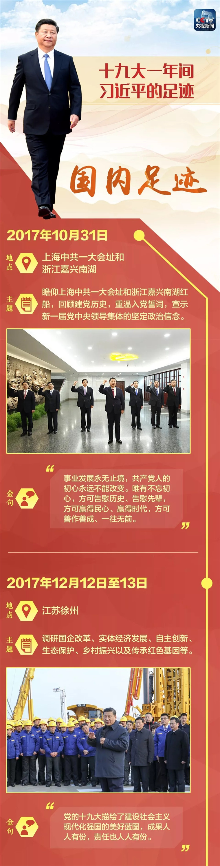 2017年10月18日,党的十九大在北京召开。如今,一年已经过去,而在这一年间,从国内考察、参加国际会议再到外事访问,习近平总书记的足迹遍布多地。今天,跟随一张图,一起回顾习近平总书记这一年来的足迹。