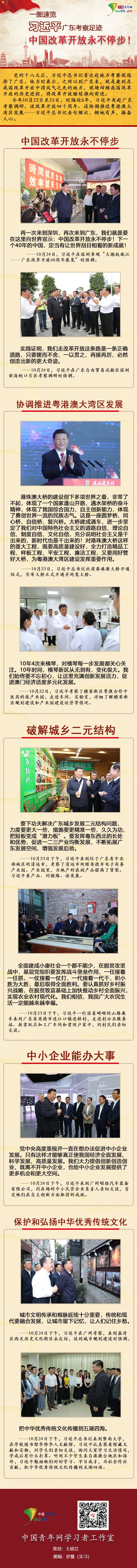 中国青年网北京10月29日电(记者 王晓芸 实习记者 罗曼)党的十八大后,习近平总书记首次赴地方考察就选择了广东。他当时表示,之所以到广东来,就是要到在我国改革开放中得风气之先的地方,现场回顾我国改革开放的历史进程,将改革开放继续推向前进。