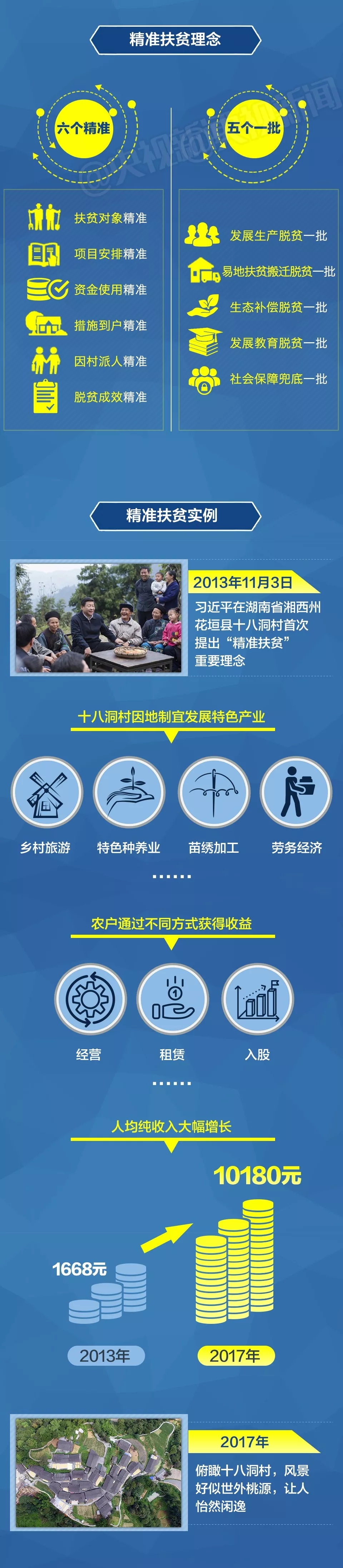 2013年11月3日,习近平总书记来到湖南十八洞村考察扶贫开发,首次提出精准扶贫理念,为脱贫攻坚提供了一把“金钥匙”。中国大地上,成千上万个“十八洞村”的命运开始得到根本性的改变。