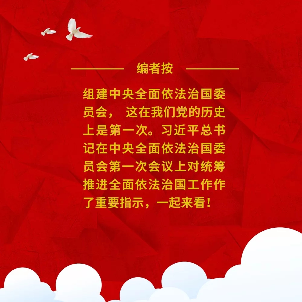 组建中央全面依法治国委员会,这在我们党的历史上是第一次。习近平总书记在中央全面依法治国委员会第一次会议上对统筹推进全面依法治国工作作了重要指示,一起来看!