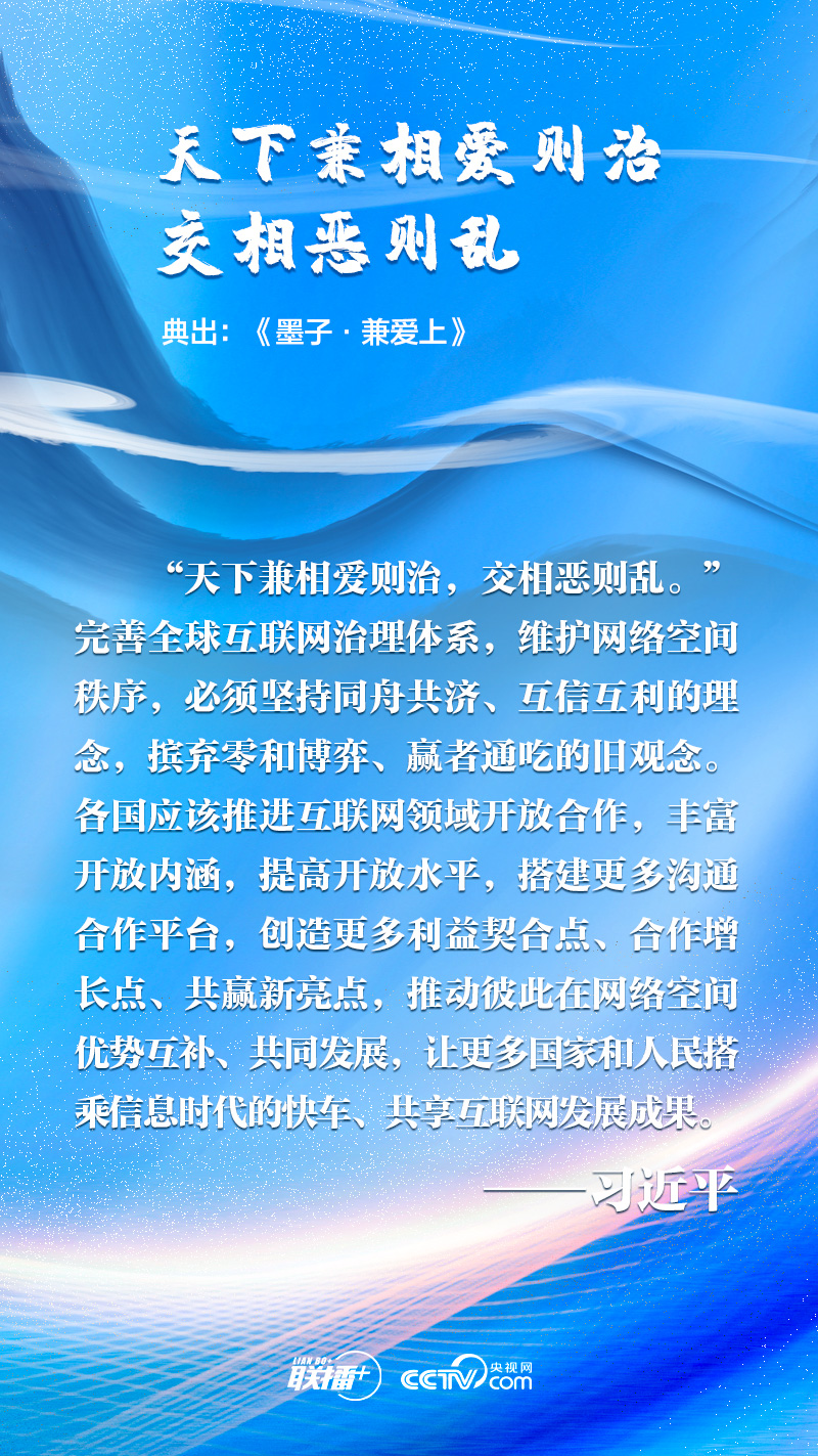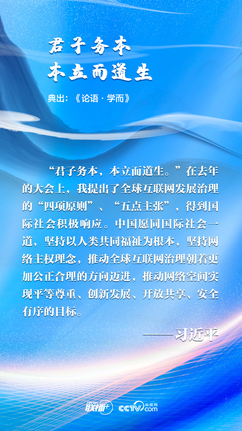 “网络空间是人类共同的活动空间,网络空间前途命运应由世界各国共同掌握。各国应该加强沟通、扩大共识、深化合作,共同构建网络空间命运共同体。”