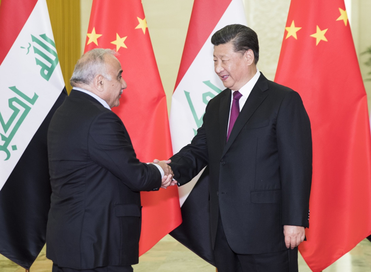 9月23日,国家主席习近平在北京人民大会堂会见伊拉克总理阿卜杜勒-迈赫迪。新华社记者 黄敬文 摄