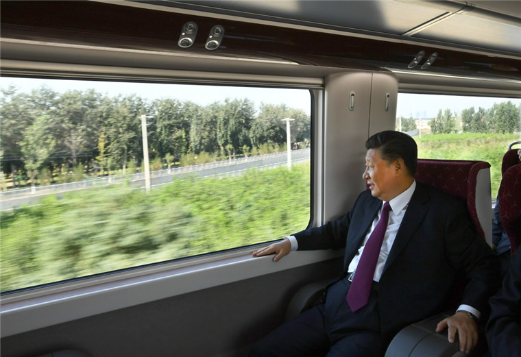 9月25日上午,北京大兴国际机场投运仪式在北京举行。中共中央总书记、国家主席、中央军委主席习近平出席仪式,宣布机场正式投运并巡览航站楼。这是习近平乘坐轨道列车前往北京大兴国际机场。新华社记者 谢环驰 摄