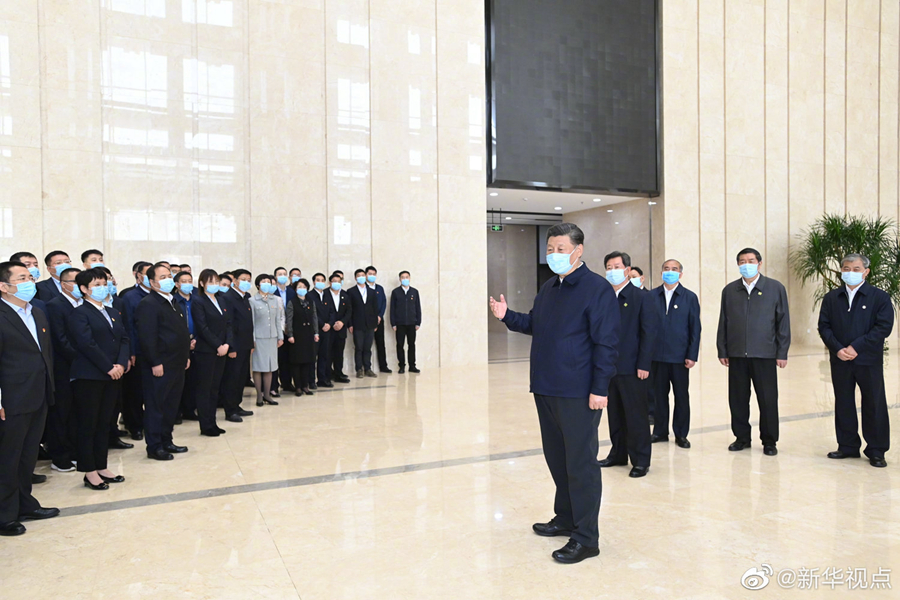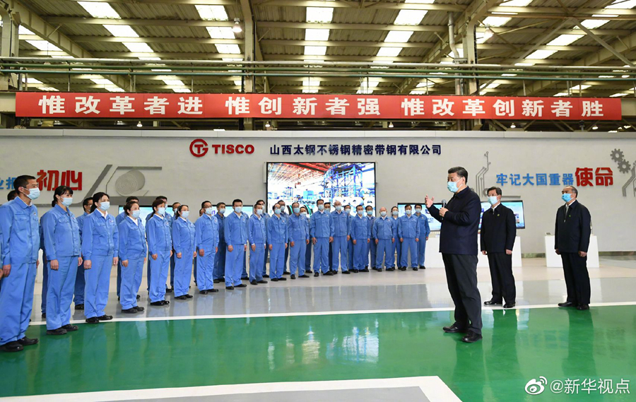 习近平总书记12日在太原考察调研。他先后来到山西转型综合改革示范区政务服务中心、太钢不锈钢精密带钢有限公司、汾河太原城区晋阳桥段,了解传统制造业转型升级、企业复工复产、生态环保和污染防治等情况。