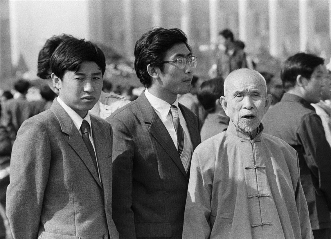 1986:北京,一位老人和他穿西服的孙子。二十世纪八十年代,全国掀起“西装潮”,中山装、军便装逐渐退出时装舞台。