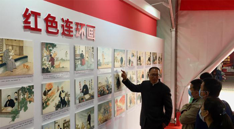 其中,展区有两面墙上展示的《李大钊》连环画等引来许多观众驻足。连环画文字作者刘恩东在现场向观众详细讲解每幅画作。他介绍,今年创作了3本红色连环画,包括《李大钊》《北大红楼》《新青年》。其中《李大钊》已经全部绘制完成,今年6月即可出版,《北大红楼》《新青年》预计6月完成创作、7月出版。