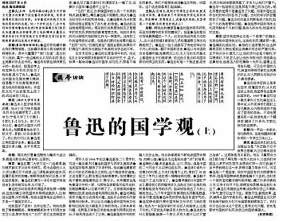 ▲2007年5月31日《光明日报》国学版文章《鲁迅的国学观(上)》
