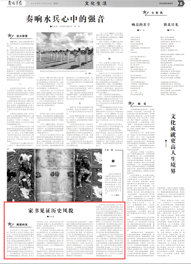 在家书里,我们也读到了共产党人的柔情。从时任华北野战军第66军炮兵团二营营长宋云亮给恋人胡玉华的信中“今天北平已经是人民的城市了”,我们看到恋人之间互相勉励、坚守信仰;从开国少将王振乾给弟弟写信说“要长久保持内心的火热”,我们看到兄弟之间棠棣情深,共同努力建设国家;从谢觉哉拒绝两个儿子来京的信中“因为任何人坐车,都要买票”,我们看到先辈以实际行动,为家人树立起廉洁自律的明镜……这些生动故事串联成新中国的鲜活记忆。它们如同一面镜子,映照出中华儿女不屈不挠、勇往直前的精神风貌。