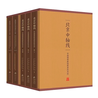 答:这套丛书共5卷,含中文版3卷、英文版2卷。中文版卷Ⅰ为北京中轴线申报世界文化遗产文本,其编制历时12年,经过数次修改增补,是支撑北京中轴线申遗成功的重要材料。卷Ⅱ为《北京中轴线保护管理规划(2022年—2035年)》。卷Ⅲ为钟鼓楼、万宁桥、景山等全部15个中轴线遗产构成要素的超高清建筑测绘图集,包含平面、立面、剖面图240余张,多数为首次出版。