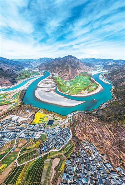 ▲长江在云南省丽江市石鼓镇转弯,形成著名的“长江第一湾”。 杜晓宇摄