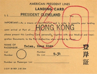 ▲钱学森回国时的登岸证。 中共党史出版社提供