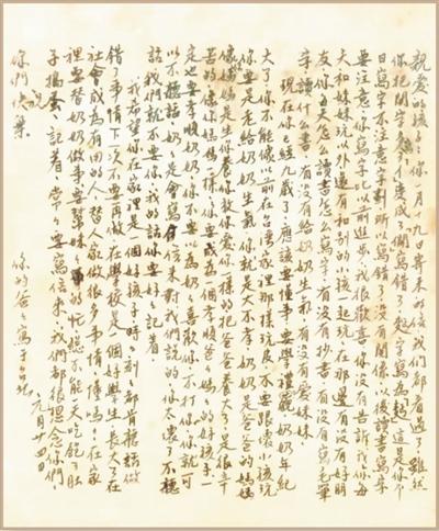 他给母亲留下充满亲情和家国情的诀别信:“我想到父亲的壮志……我须担起双重的责任,所以我踏上父亲的道路……‘苦难与牺牲’,这是崇高的品性和无比的光荣。所以妈你用不着悲伤,也不用为我担忧,生着要为责任艰苦牺牲奋斗,死是我们完(成)了责任!”一个家族的爱国之情,一个共产党员的报国之志,猎猎回响。