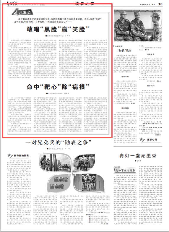 批评和自我批评是规范组织生活、改进思想和工作作风的重要途径。近日,围绕“批评”这个话题,军报刊发了不少稿件,一些读者读罢表达心声——