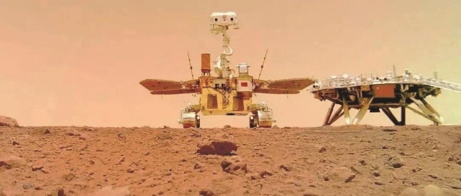 ▲“祝融”号火星车拍摄的“着巡合影”图。 来源:中国国家航天局
