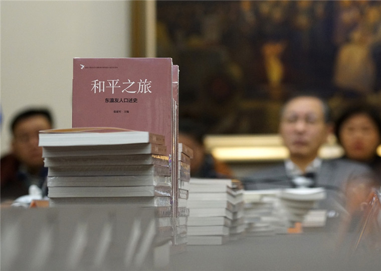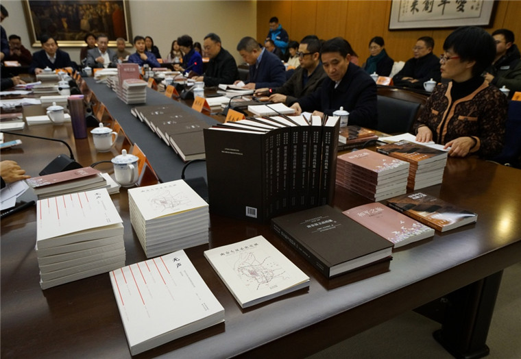 12月9日,部分新书在首发式会场陈列展示。新华社记者孙参 摄