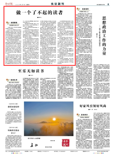 阅读属于人类独有的实践活动,是构成人的精神活动的重要组成部分,也是人类不断发展和提升的重要途径。书本可能只是抽象知识的载体,却包含着无言的力量。读书人可以借助阅读获取知识、探索未知、拓展思维、完善自我,所谓“开卷有益”讲的就是这个道理。