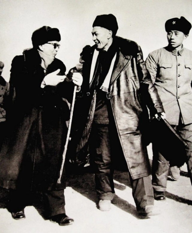 ▲聂荣臻(左)与朱光亚(中)在核试验基地。