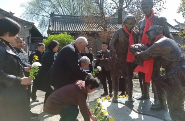 ▲2021年4月4日,昭通籍抗战老兵赵克、赵继昌铜像入住台儿庄古城。