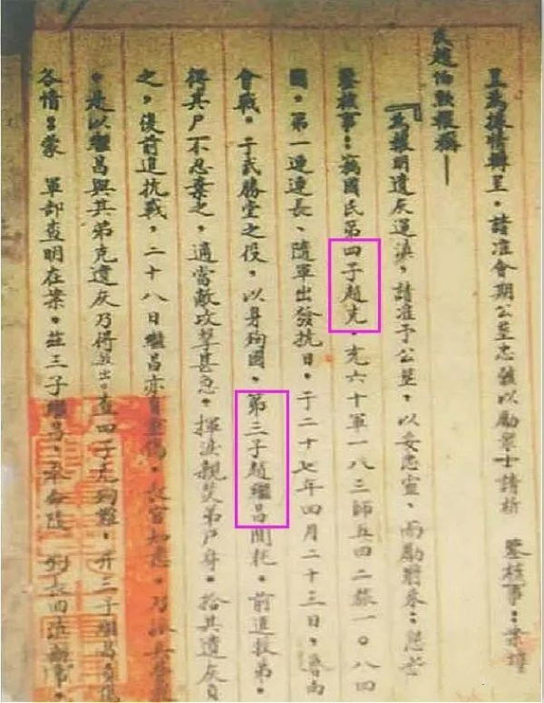 ▲档案中记载的赵克兄弟事迹。
