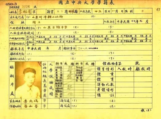 ▲李竹如(原名李贻萼)中央大学学籍表。 (图源:南京大学档案馆)