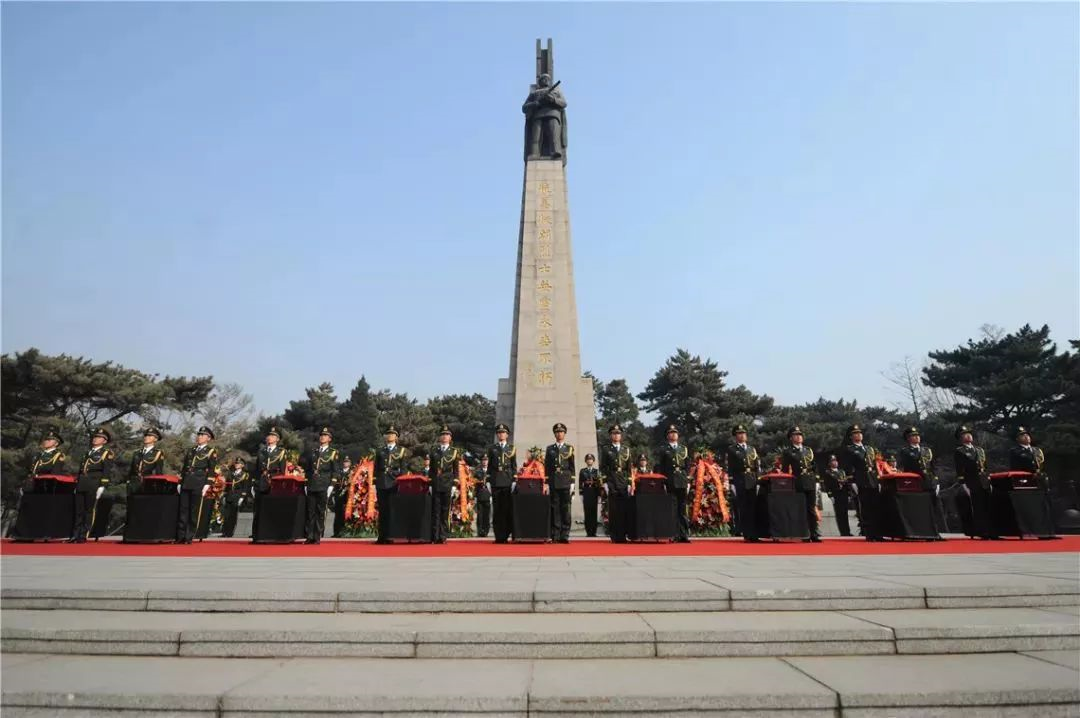 2018年3月29日上午,第五批20位在韩中国人民志愿军烈士遗骸在沈阳抗美援朝烈士陵园安葬。