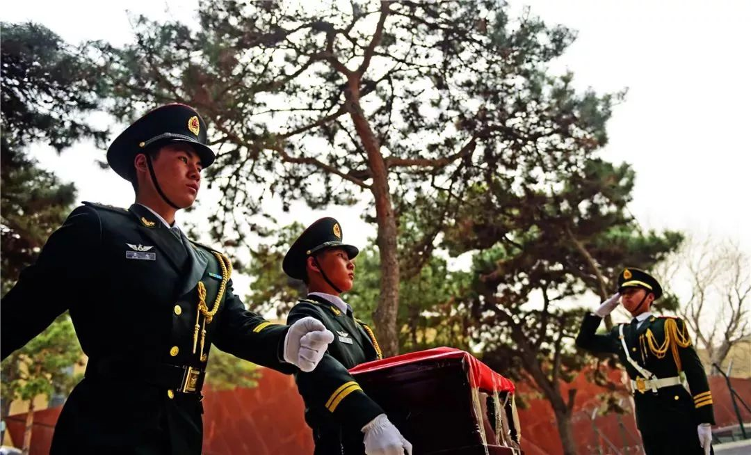 ▲2016年3月31日,礼兵护送遗骸到达沈阳抗美援朝烈士陵园。新华社记者 杨青 摄