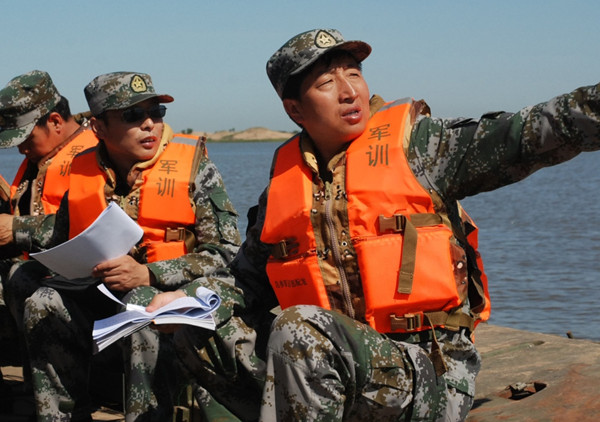 这是关喜志(右)率部队在吉林省长白山脚下驻训的资料照片(2009年11月24日摄)。 新华社发