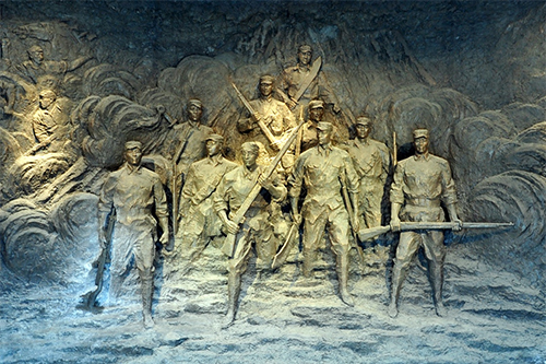 走进山东乳山马石山十勇士纪念馆,迎面可见10名战士的雕像,他们手持长枪、身背大刀,眼神坚毅,诉说着党和军队以命相救、与人民群众生死与共的英雄壮举。