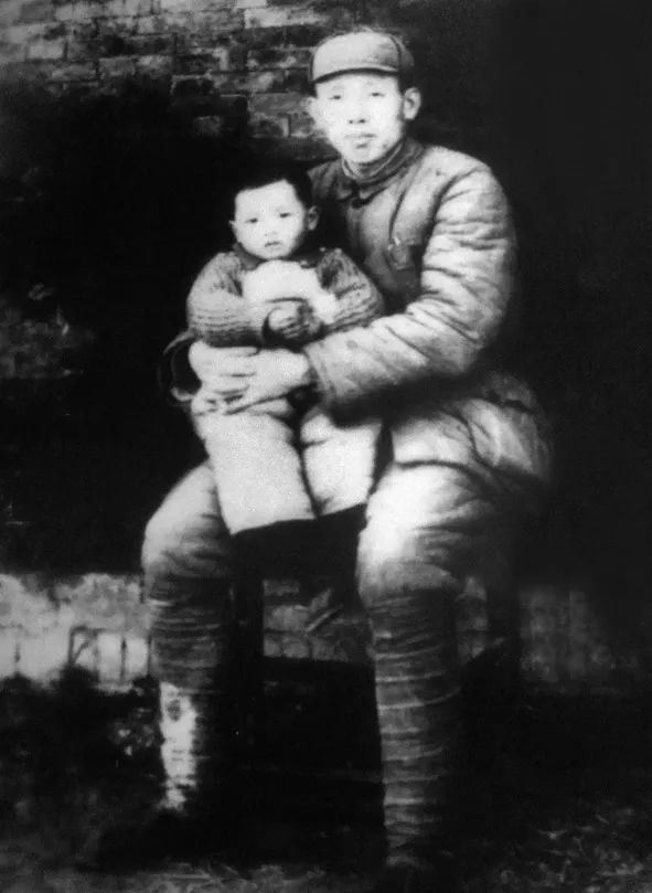 △胡文杰在解放上海战役前夕与儿子的合影